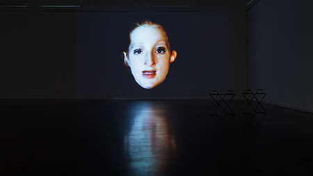 Geheimnis In a darkened room, several videoportraits can be seen and a chorus of whispering voices can be heard. Each Video shows a narrating person. These persons were asked before to tell a personal secret under their blanket. These secrets are now entrusted to the viewer. For this to happen, he has to step close to the projection to discern the voice of the person whispering theirs from the chorus of the other voices. By this act, the viewer puts himself on a very personal level with the narrator, on which the secret is shared and therefore becomes public – thereby ceasing to be a secret.