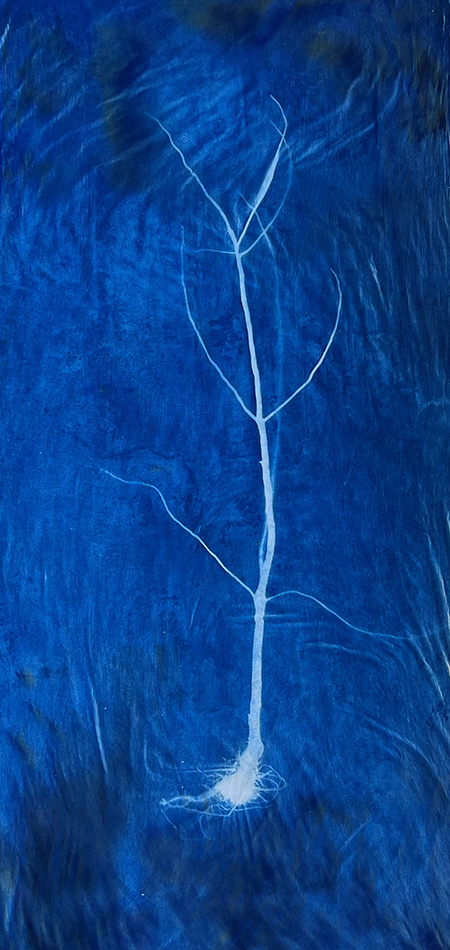 Past and Future Forest Seit 2022, Großformatige Cyanotypien abgestorbener Bäume, 2,4 x 6 Meter Weit mehr als die Hälfte der europäischen Wälder ist durch Windwurf, Waldbrände, Insektenplagen oder eine Kombination aus mehreren dieser Faktoren gefährdet - die Ursache liegt im Klimawandel. Diese Fakten sind schwer greifbar, die Dimension unvorstellbar. ich möchte sie daher auf künstlerische Weise erfassen, großformatige Cyanotypien abgestorbener Bäume anfertigen, um ihr Abbild zu konservieren. |