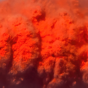 Red Rain 2022, AI-generated digital images, 140 x 140 cm, Aluminium Dibond In the summer of 2022, the forest fires in France and elsewhere in Europe were one of the dominant topics of media coverage; after all, they showed us our vulnerability to the changing climate. For me, the defining images of the disaster were those of firefighting planes repeatedly throwing water dyed red with phosphates as fire retardants into the flames. These images of the catastrophe were not without a certain aesthetic quality and once again raised the question of whether the terrible can be depicted aesthetically in art. Together with the distancing we as viewers have through the almost exclusively digital viewing of such images through the intermediary device, this led me to investigate these two aspects. In order to address this viewing of the images through digital devices, I selected tiny image sections of the medial images and had them interpreted again and again by AI-supported image enlargement software. The resulting large-scale images are AI-generated visions of a real catastrophe. |