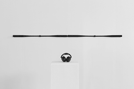 The Rest Is Silence In four adjacently lying black baseball bats, an actor engraved a line while he recited Hamlet's last words from William Shakespeare's play. The motions generated by the speech in the body are transferred to the engraving hand, so that instead of a straight line a jagged wave line is created, which resembles an audio waveform. |